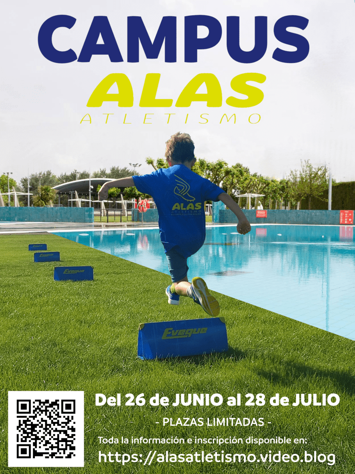 El club de atletismo ALAS os anima a participar en nuestro CAMPUS DE VERANO 2023, se trata de una experiencia nueva y diferente, compaginando divertidos entrenamientos de atletismo y momentos de recreación con juegos y baños en la piscina.