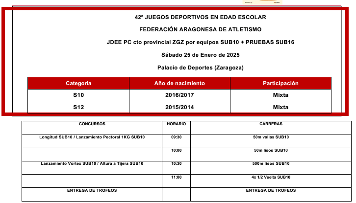 Este sábado 25/01/25 se celebrará el Campeonato por Equipos de la categoría SUB10 (2016/2017) en el Palacio de los Deportes (huevo). Al final de la jornada se entregarán trofeos a los seis primeros equipos.